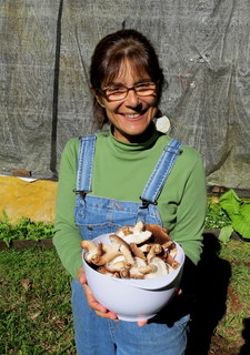 Temos atualmente em torno de 1,800 toras de eucaliptos inoculadas com o micélio do cogumelo shiitake. Já estamos produzindo uma quantidade pequena de cogumelos e esperamos aumentar a produção a partir de julho de 2014, quando toras mais recentes deverão começar a produzir.
