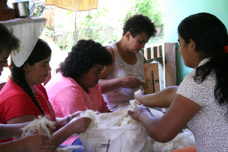 Após a secagem, a lã continua meio embolada e deve ter os fios separados. Assim, os chumaços de lã são abertos com as mãos de forma que todos os fios estejam desgrudados uns dos outros.