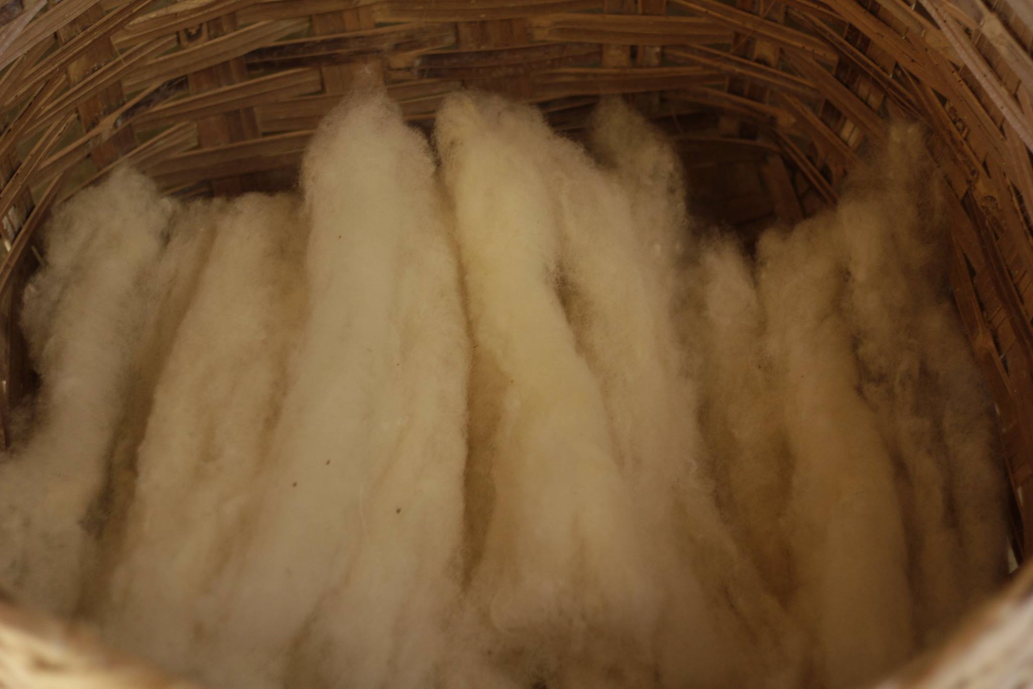 Após a tosquia, apenas a lã do velo será aproveitada para a tecelagem. Lã de outras partes (normalmente mais curtas) são utilizadas para o enchimento de almofadas. A lã é lavada com água fria de forma a reter uma parte da lanolina, um óleo natural que as ovelhas produzem e que deixa a lã mais suave. Após a lavagem a lã é deixada ao sol para secar sobre uma cerca ou um jirau.
