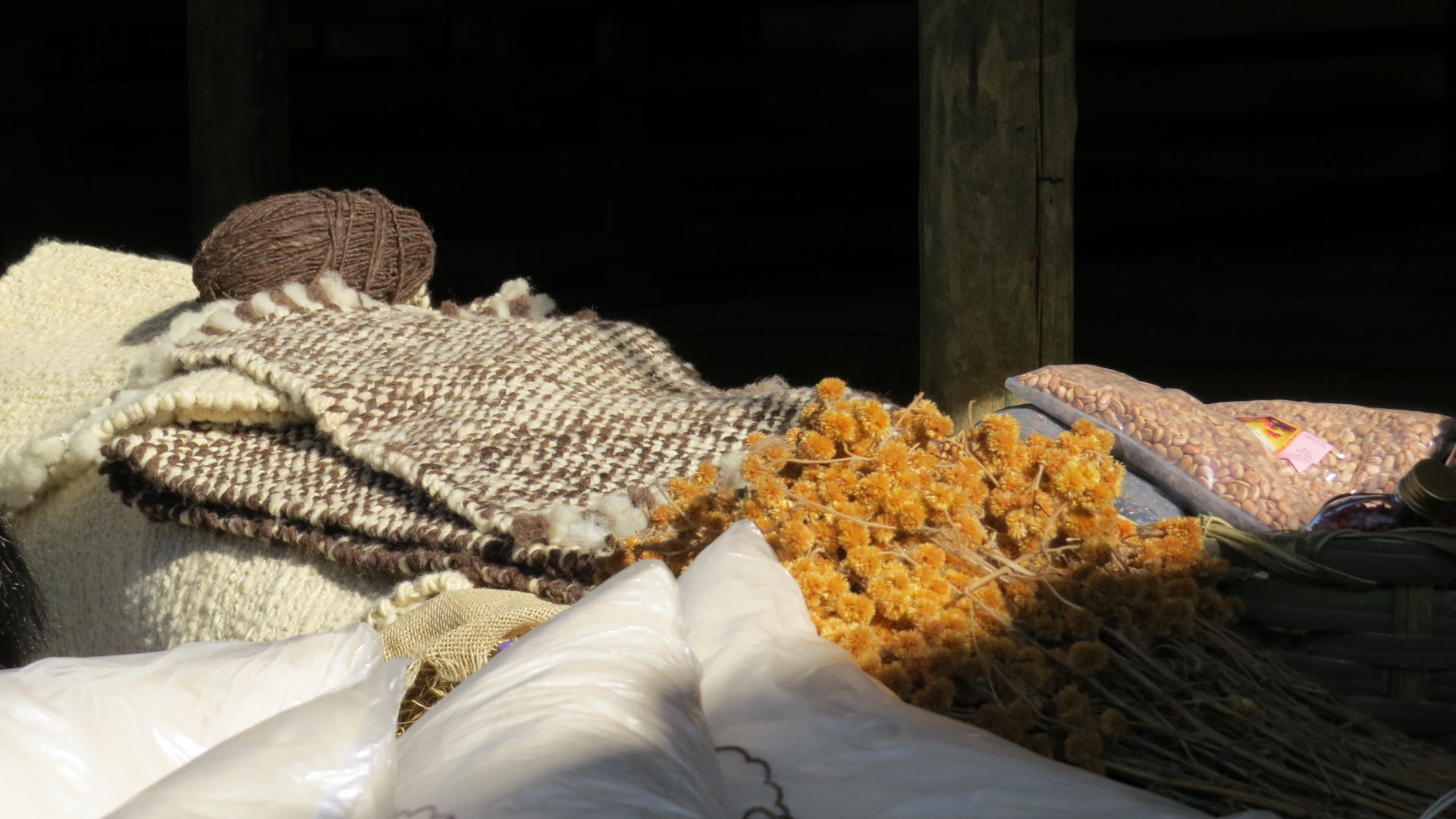 The woolen products are crafted using sheep wool. At the Oficina da Lã, we use natural color wools: white wool normally comes from our Texel sheep which have an acceptable quality of wool as well as produce good meat; the darker wool comes from Caracou sheep, which wool has various different natural colors, ranging from cream to dark brown. This allows for different patterns by combining the wool from both these breeds.
